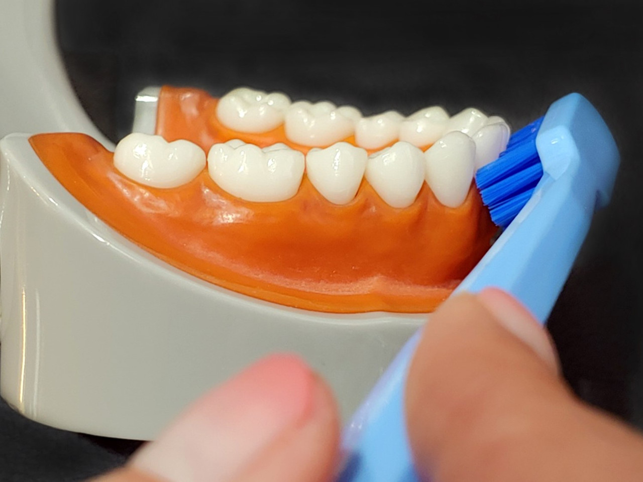 치주질환은 치아와 잇몸의 경계에게 세균성 침착물이 제거되지 못해 발생합니다. 따라서 이 부분을 양치질로 잘 관리하면 충분히 예방이 가능합니다. 칫솔로 단단한 치아와 부드러운 잇몸을 동시아 닦아주어야 하기에 부드러운 칫솔을 사용해야 합니다. 칫솔모의 작경이 작아서 부드럽고 얇아야하고, 칫솔모의 갯수가 많아서 모여있을 때 어느정도 힘을 가져야 합니다. 가는 칫솔모가 빽빽히 심긴 칫솔을 선택합니다. 치아면에 최대한 밀착되고 그 접촉면적이 넓은 칫솔이 최대의 세정 효과를 발휘합니다.